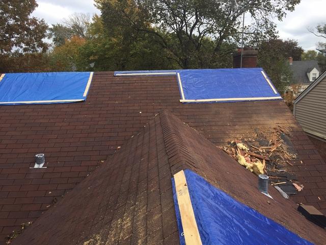 We boarded up several areas of this roof that had severe damage. These temporary board ups will help to keep out water and overall keep the home protected from the elements!