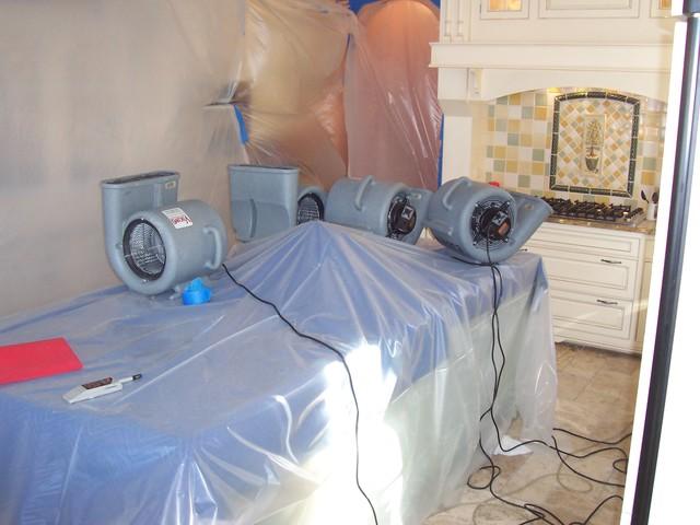 Professional water damage restoration is a snap for us, as seen here after a pipe burst, leaving the home flooded throughout. We had to also set up containment to allow us to dry the structure faster and ensure that non-affected areas didn’t get disturbed.